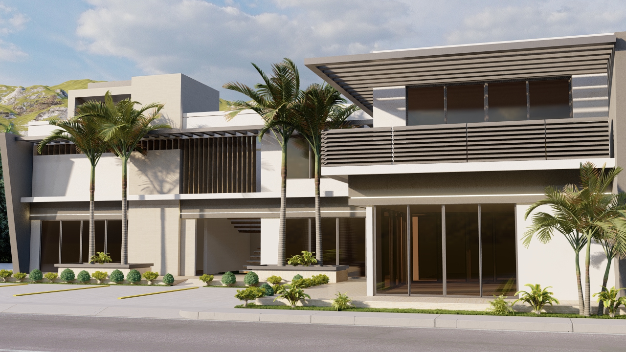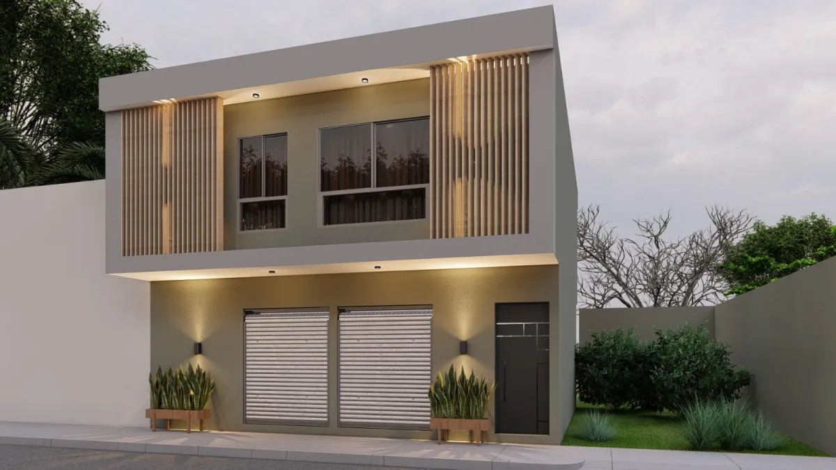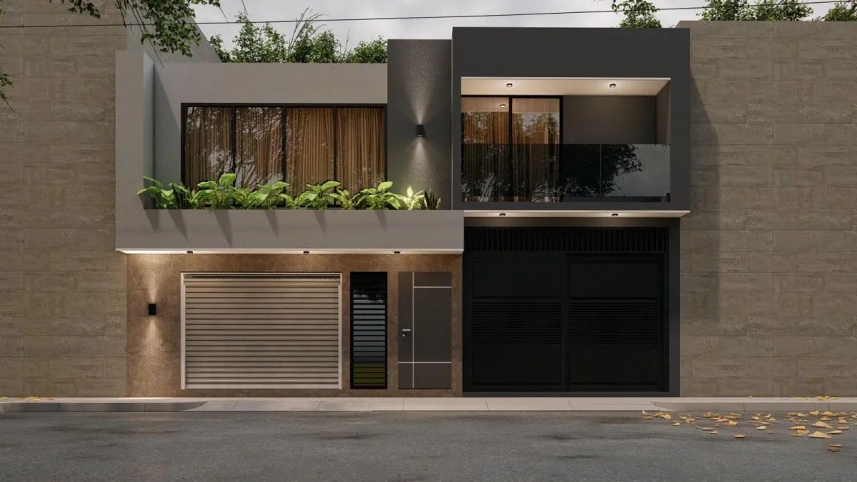 Diseño de fachada moderna que combina privacidad, elegancia y funcionalidad. Proponemos volúmenes limpios, jardineras integradas y una iluminación estratégica que realza la arquitectura tanto de día como de noche. El uso de materiales sobrios y balcones con barandal de cristal aporta un estilo contemporáneo y sofisticado, logrando una imagen moderna, segura y atemporal.